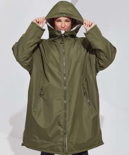 TriDri’s latest outerwear is essential in everyone’s wardrobe! The TriDri® All-seasons waterproof changing robe boasts a waterproof exterior with hood to keep you dry, as well as adjustable straps to the wrists and chin guard to help lock in heat on windy days. The cosy sherpa fleece interior absorbs moisture and keeps you warm, making it a great choice after water activities or rainy days on the football pitch. Designed to be oversized, the jacket is ideal for changing into warm, dry clothes, offering a double zip – so more room to move! Featuring multiple deep pockets, inside and out, it’s not just for athletes, but perfect for rainy commutes or frosty walks with the dog.